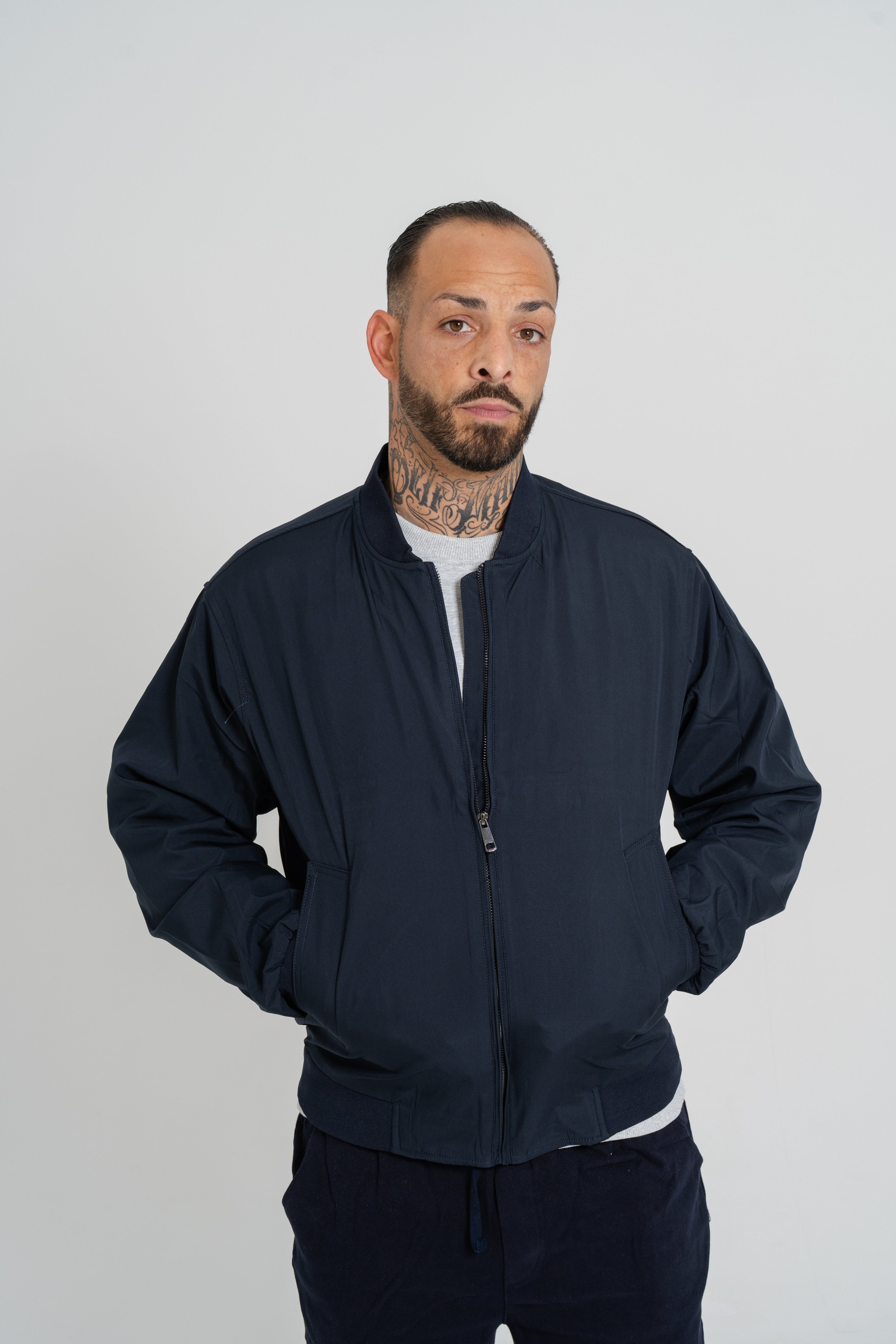 Our Bomber Jacket effortlessly balances functionality with refined style. Designed with a relaxed fit that flatters the silhouette, this piece delivers understated elegance for any occasion. The model pictured stands 1.84m tall and wears size L, showcasing how the jacket's generous cut creates a contemporary, polished look. Crafted from 100% polyester for durability and easy care, it's the versatile layer every sophisticated wardrobe deserves.