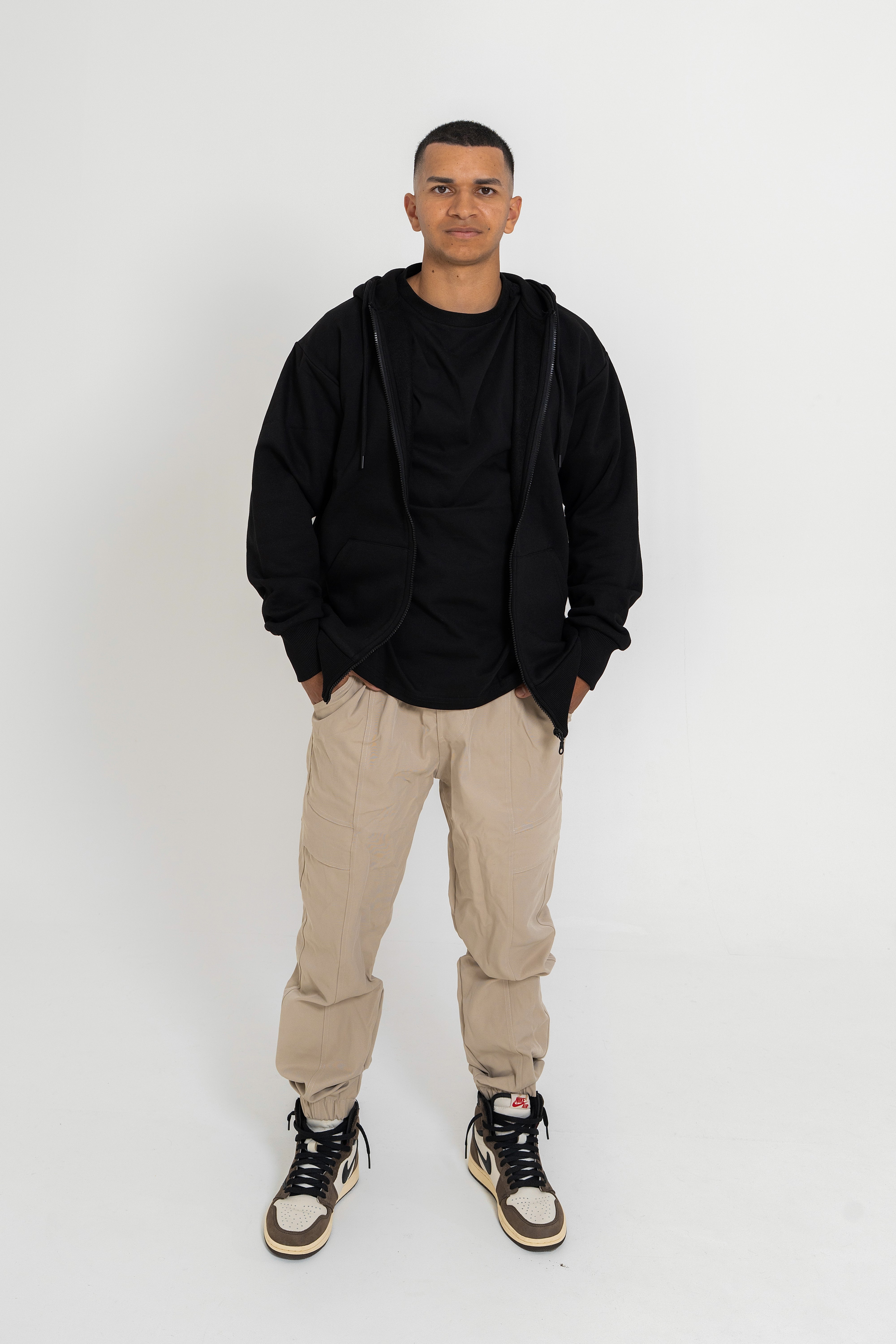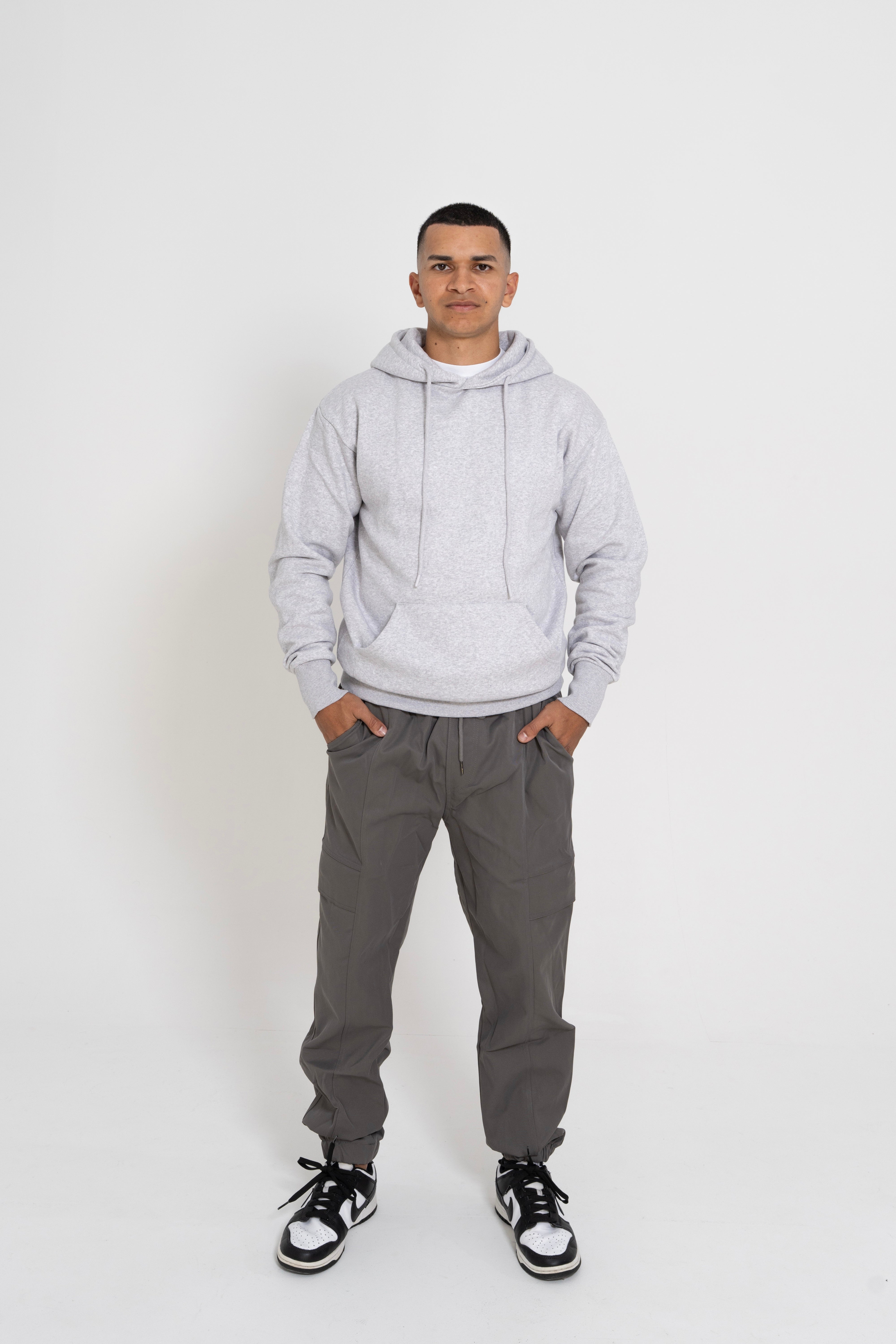 Effortlessly versatile, these cargo pants combine relaxed comfort with contemporary style. Featuring adjustable drawstring waist and tapered ankles, they deliver a refined silhouette that transitions seamlessly from casual to smart-casual settings. The thoughtfully balanced fabric blend of 65% cotton and 35% polyester ensures breathability while maintaining shape and durability. Model pictured is 1.72m tall wearing size M. A wardrobe essential that prioritizes both function and understated elegance.