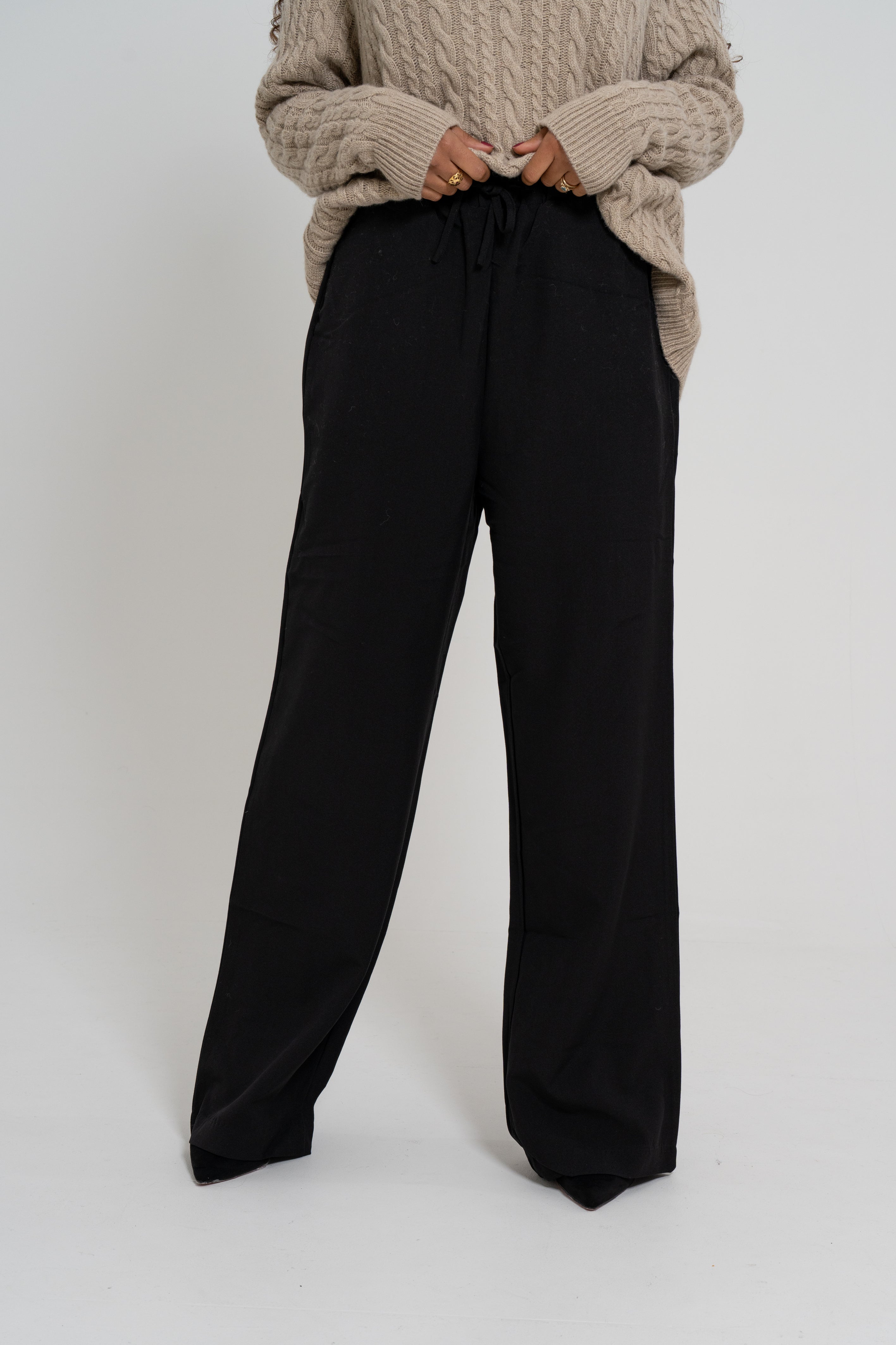 Effortlessly chic and undeniably comfortable, these cloth pants feature a drawstring waist that allows for a relaxed, tailored fit. The fluid fabric drapes beautifully, creating an elegant silhouette that transitions seamlessly from day to evening. Crafted from a refined blend of 70% polyester, 27% viscose, and 3% elastane, the pants offer both structure and movement. Perfect for those seeking understated sophistication with modern appeal.