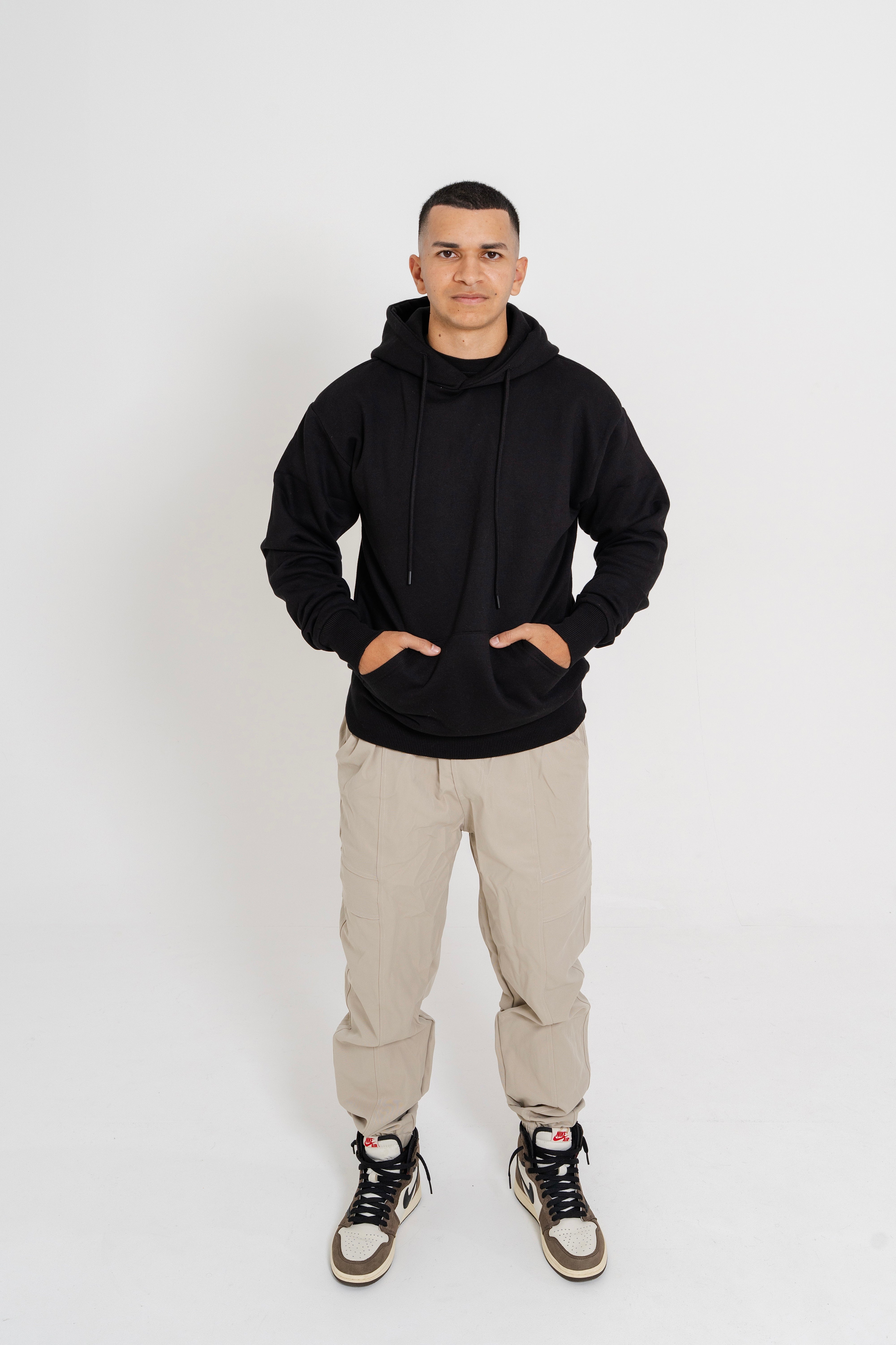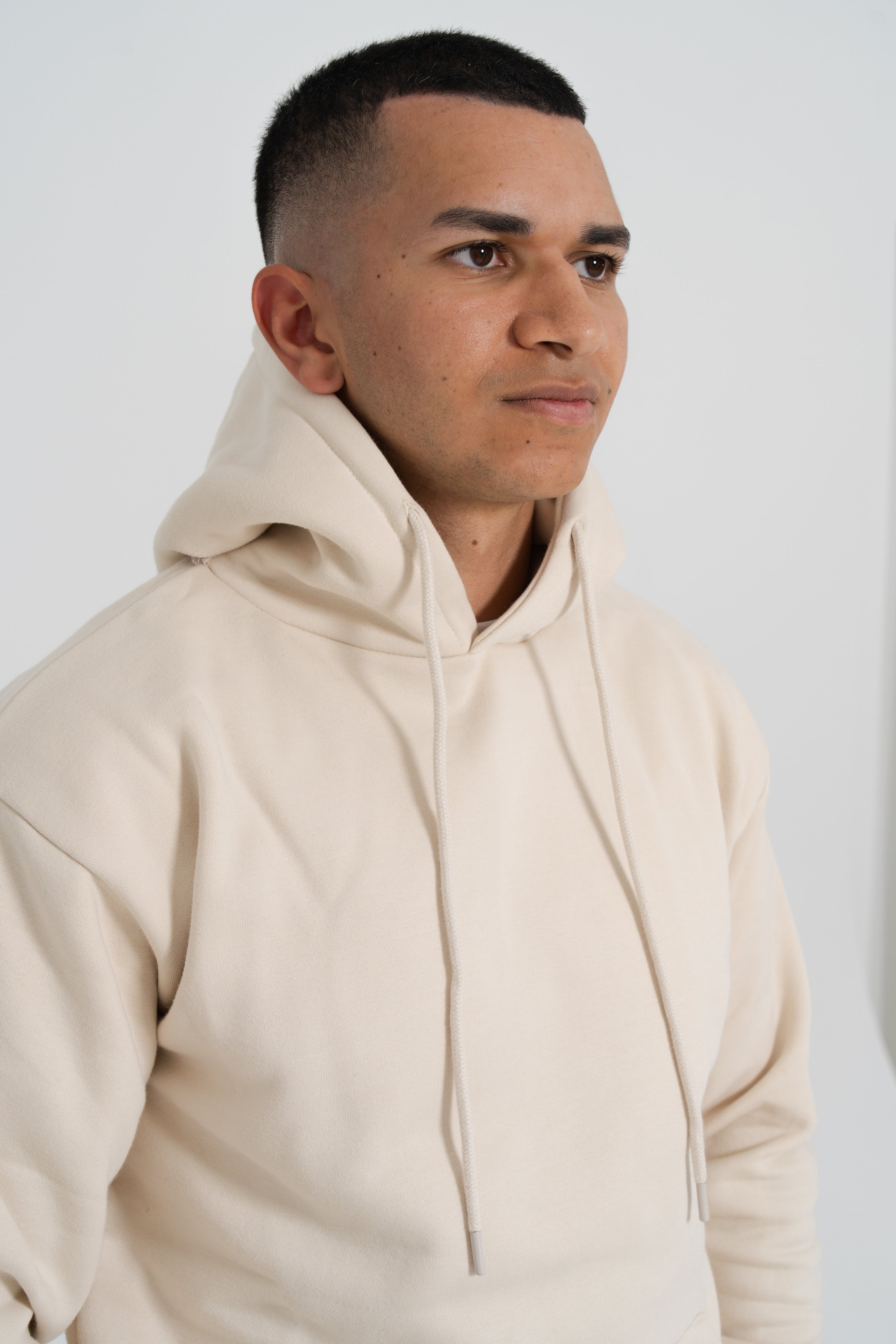 Our relaxed-fit hoodie combines comfort with contemporary style. Crafted from a premium blend of 65% cotton and 35% polyester, it delivers a soft, breathable feel against your skin while maintaining its shape. The generous cut allows for effortless layering and movement, making it an essential piece for your everyday wardrobe. Model pictured is 1.72m tall wearing size M.