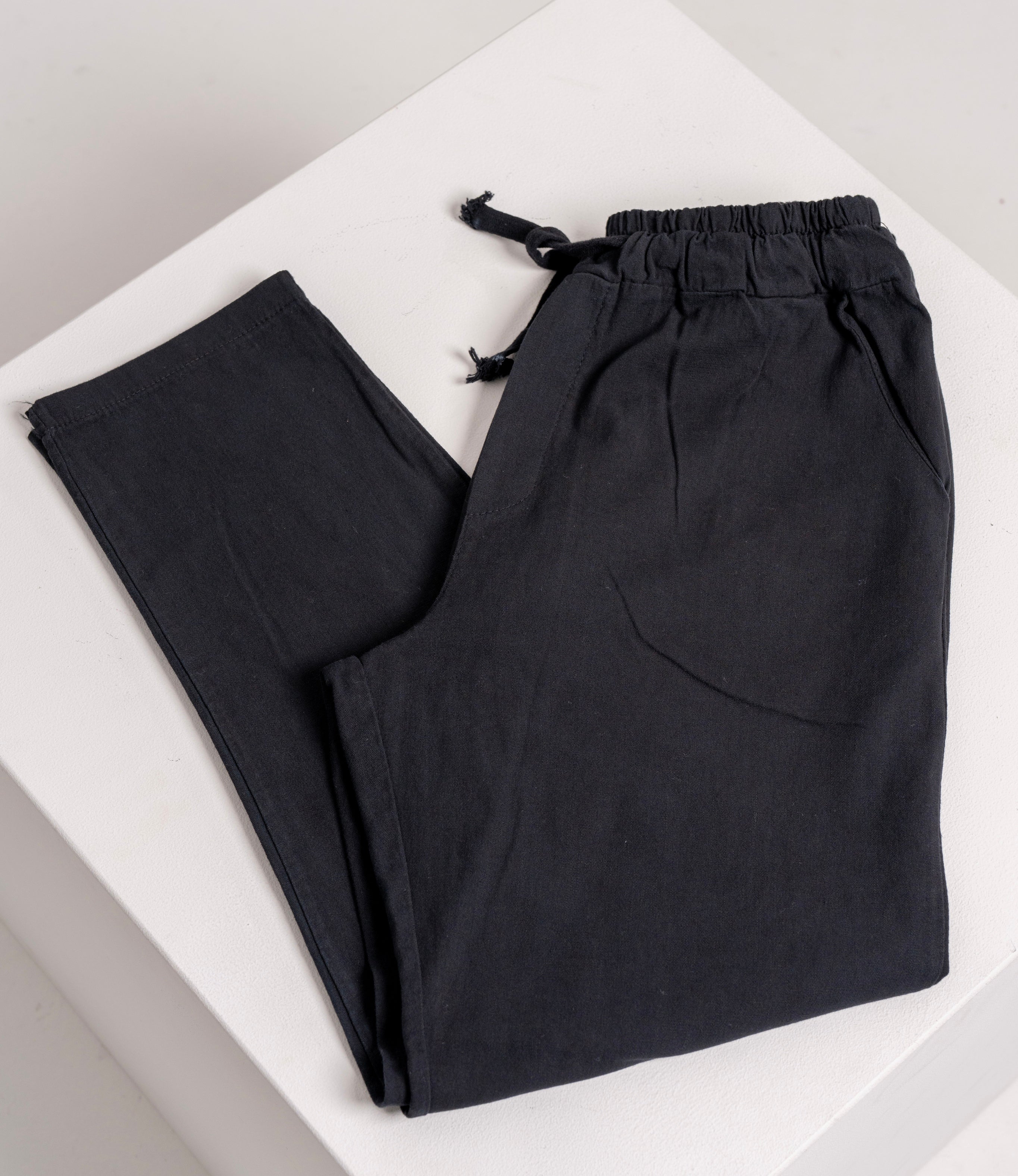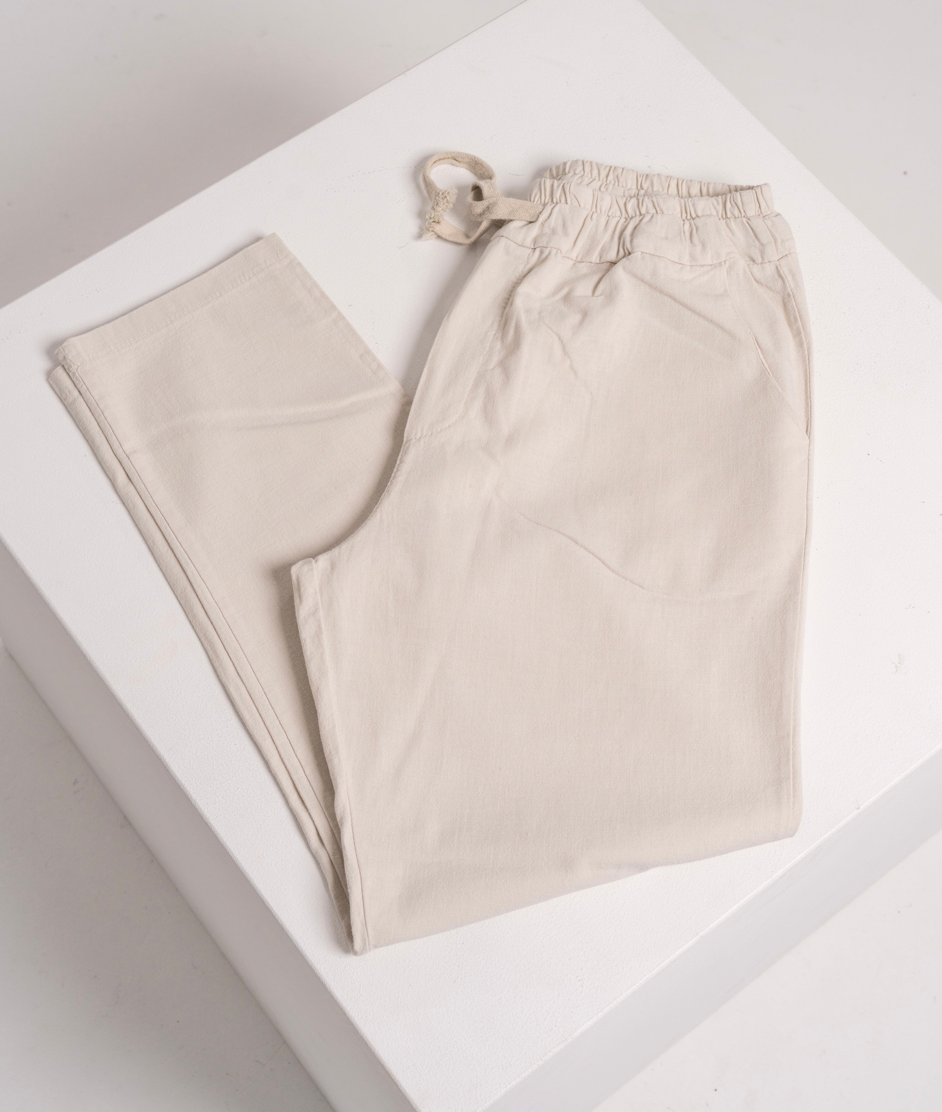 Our Linen Look trousers offer effortless summer style with a breathable, relaxed fit. Crafted from a premium cotton-elastane blend (97% cotton, 3% elastane), these lightweight pants feature an airy linen aesthetic that drapes beautifully. The loose silhouette provides comfort without compromise. We recommend sizing up one size from your usual fit for the perfect relaxed look. Model is 1.81m tall, wearing size L.
