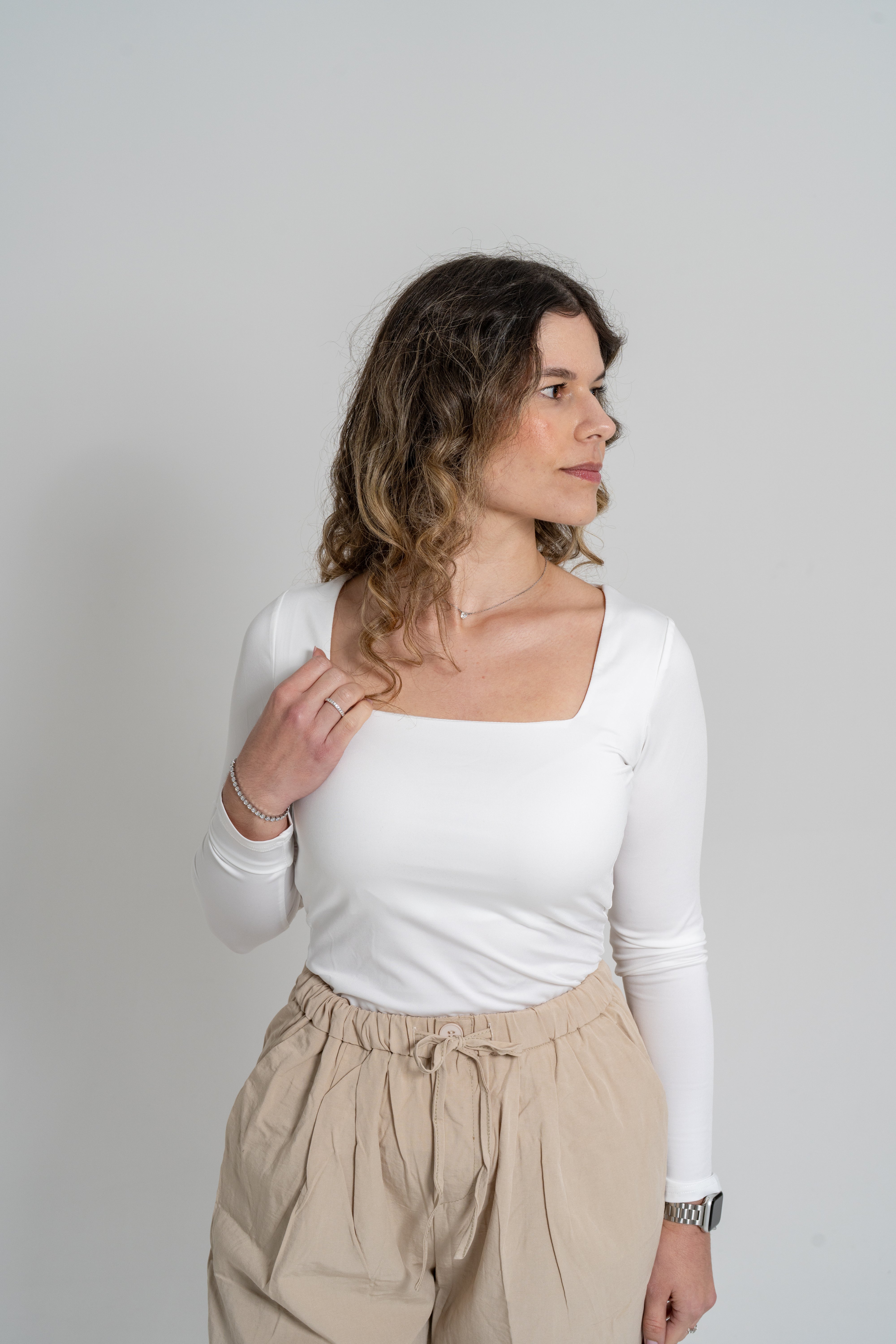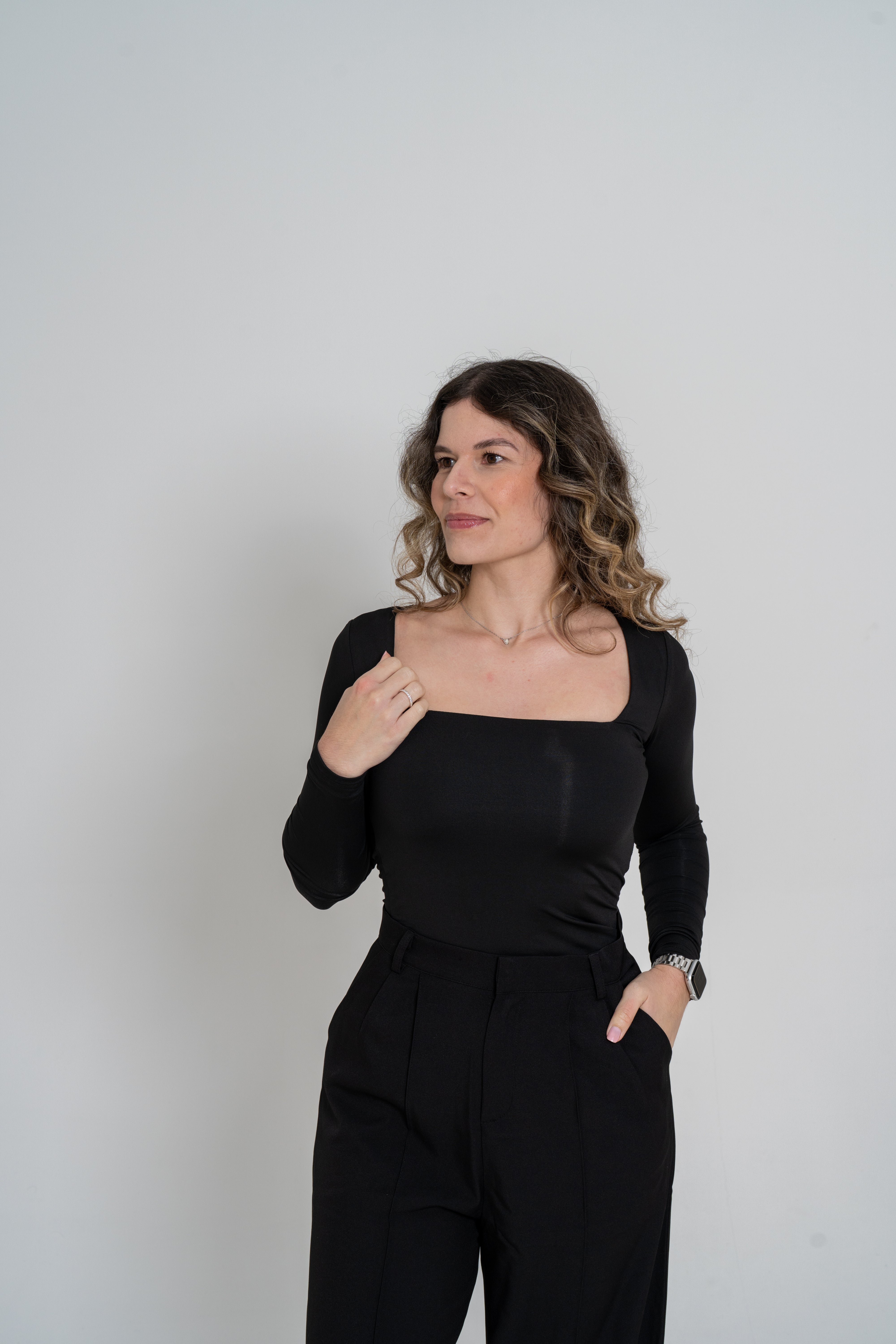 Our Longsleeve in premium microfiber delivers refined elegance with exceptional comfort. The fitted silhouette flatters the frame while the carefully selected fabric blend—65% polyester, 30% viscose, and 5% elastane—ensures a luxuriously soft feel against the skin. Designed for versatility, this piece transitions effortlessly from day to evening wear. Model pictured is 1.70m tall wearing size M.