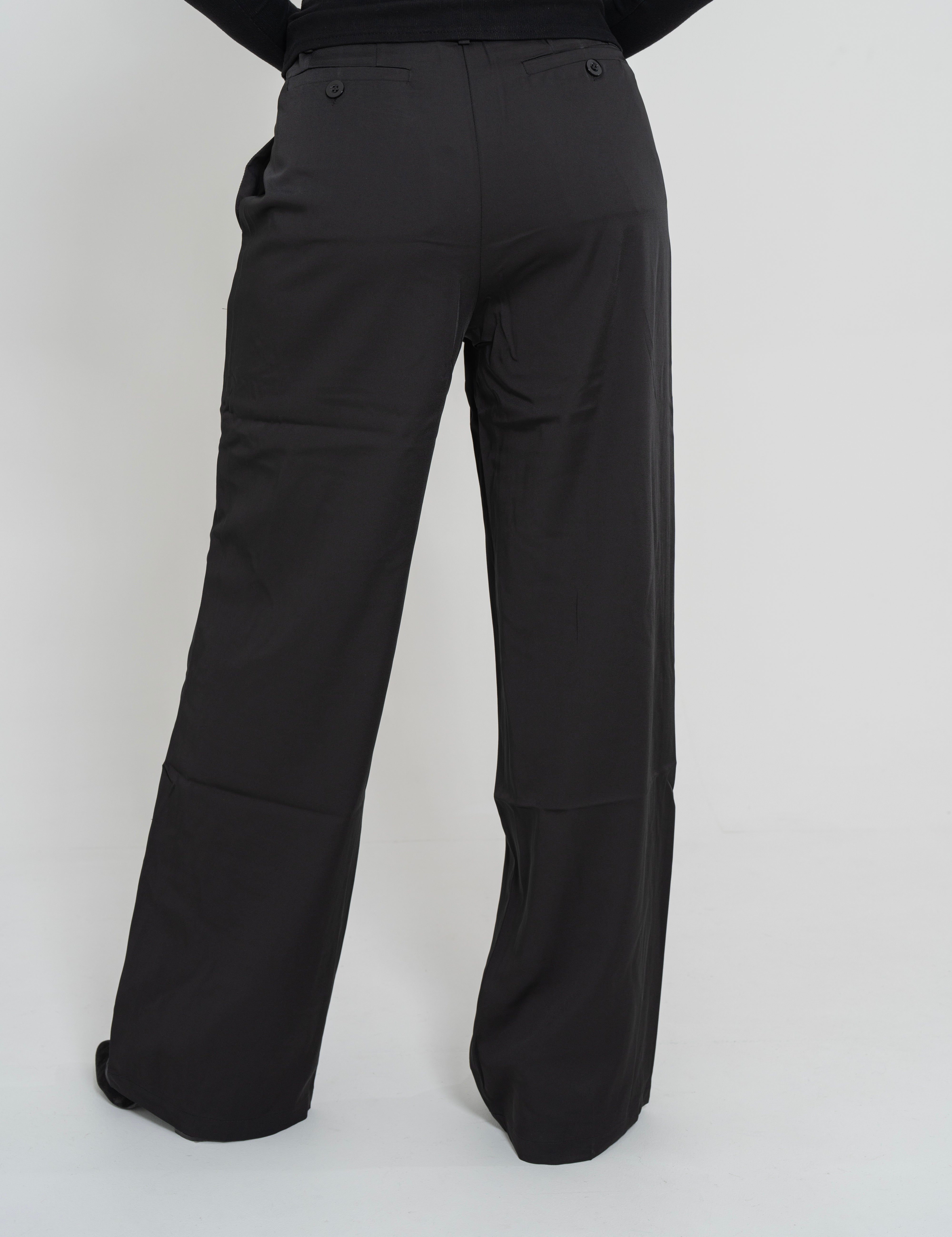 Our Suit Pants in Black are designed for effortless elegance. Cut with a relaxed fit, they drape beautifully to create a flowing silhouette that feels modern and refined. The blend of 95% polyester and 5% elastane offers comfort with subtle stretch, making them perfect for all-day wear. Styled here on our 1.74m model in size M, these pants deliver a polished, contemporary aesthetic that transitions seamlessly from office to evening.