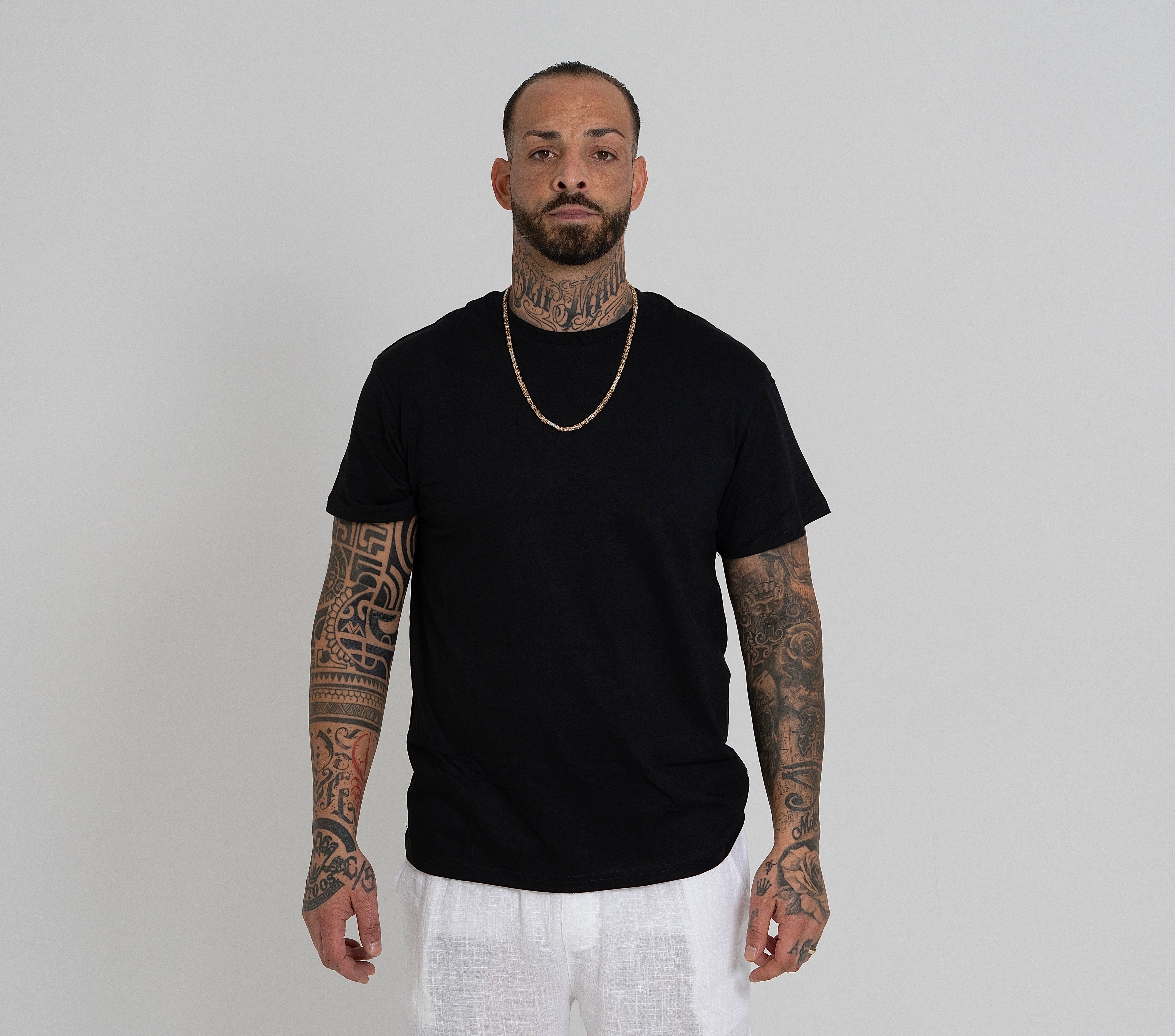 This fitted T-shirt combines comfort with contemporary style, crafted from a premium blend of 80% cotton and 20% elastane. The cotton content delivers a soft, breathable feel against the skin, while the elastane provides gentle stretch and shape retention throughout the day. The tailored silhouette creates a sleek, modern look that works seamlessly across casual and refined occasions. Model pictured is 1.84m tall wearing size L.