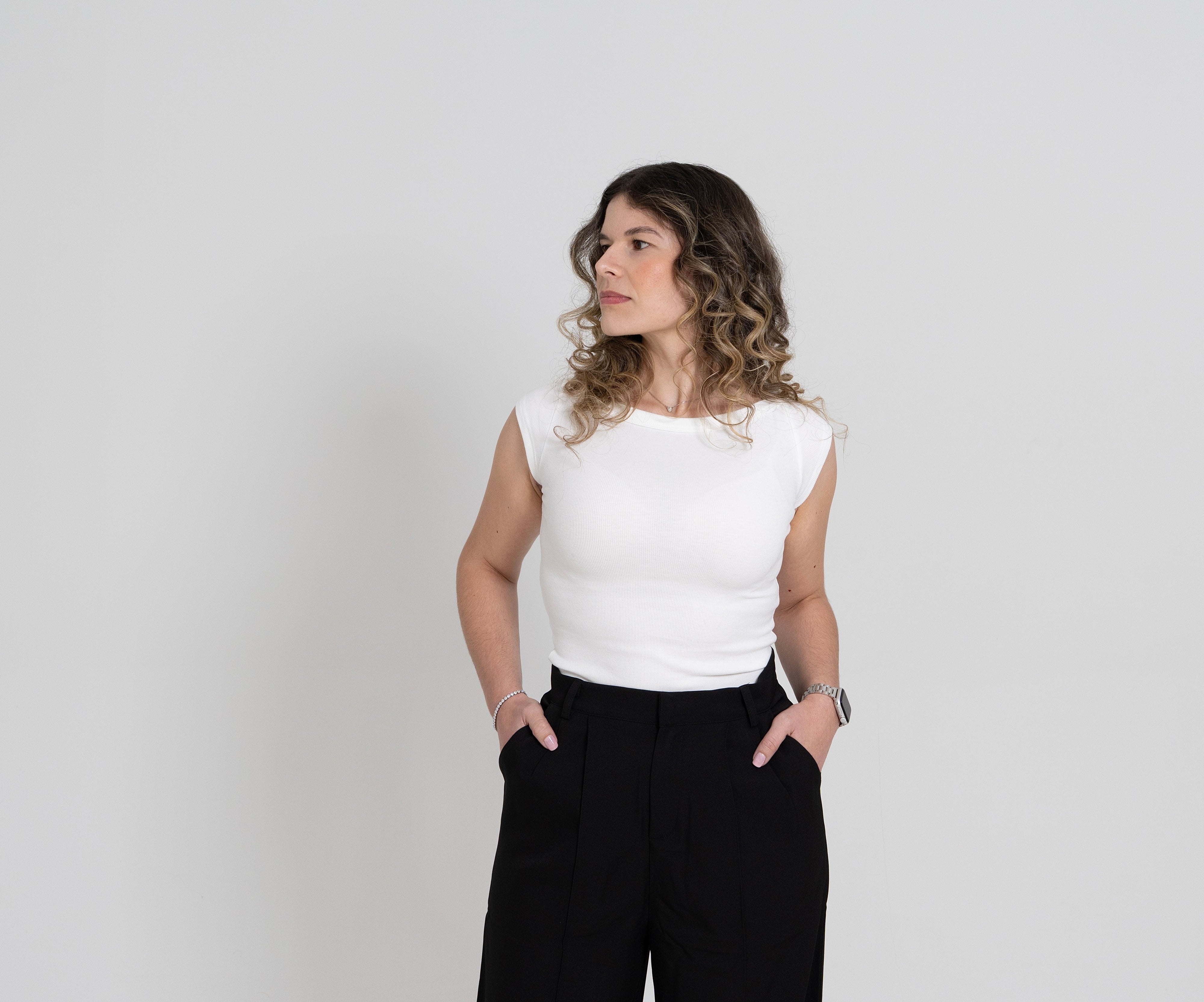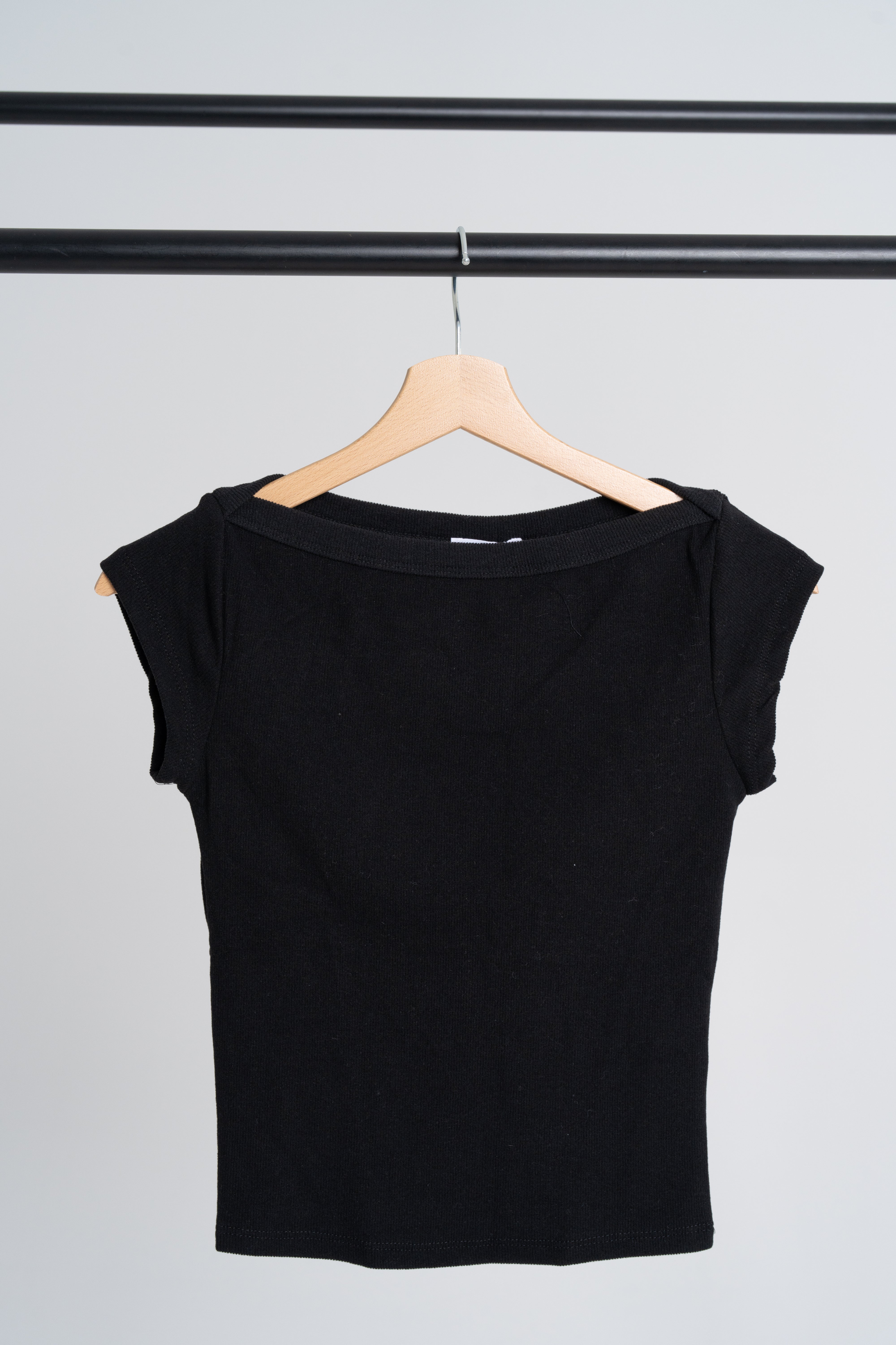 This fitted ribbed t-shirt combines contemporary style with exceptional comfort. Crafted from a premium blend of 60% polyester, 30% rayon, and 10% spandex, it delivers a luxuriously soft feel against the skin while maintaining its shape. The fabric's natural stretch ensures a flattering silhouette that moves with you. Perfect for effortless everyday elegance, this piece transitions seamlessly from casual to refined occasions. Model pictured is 1.70m wearing size M.