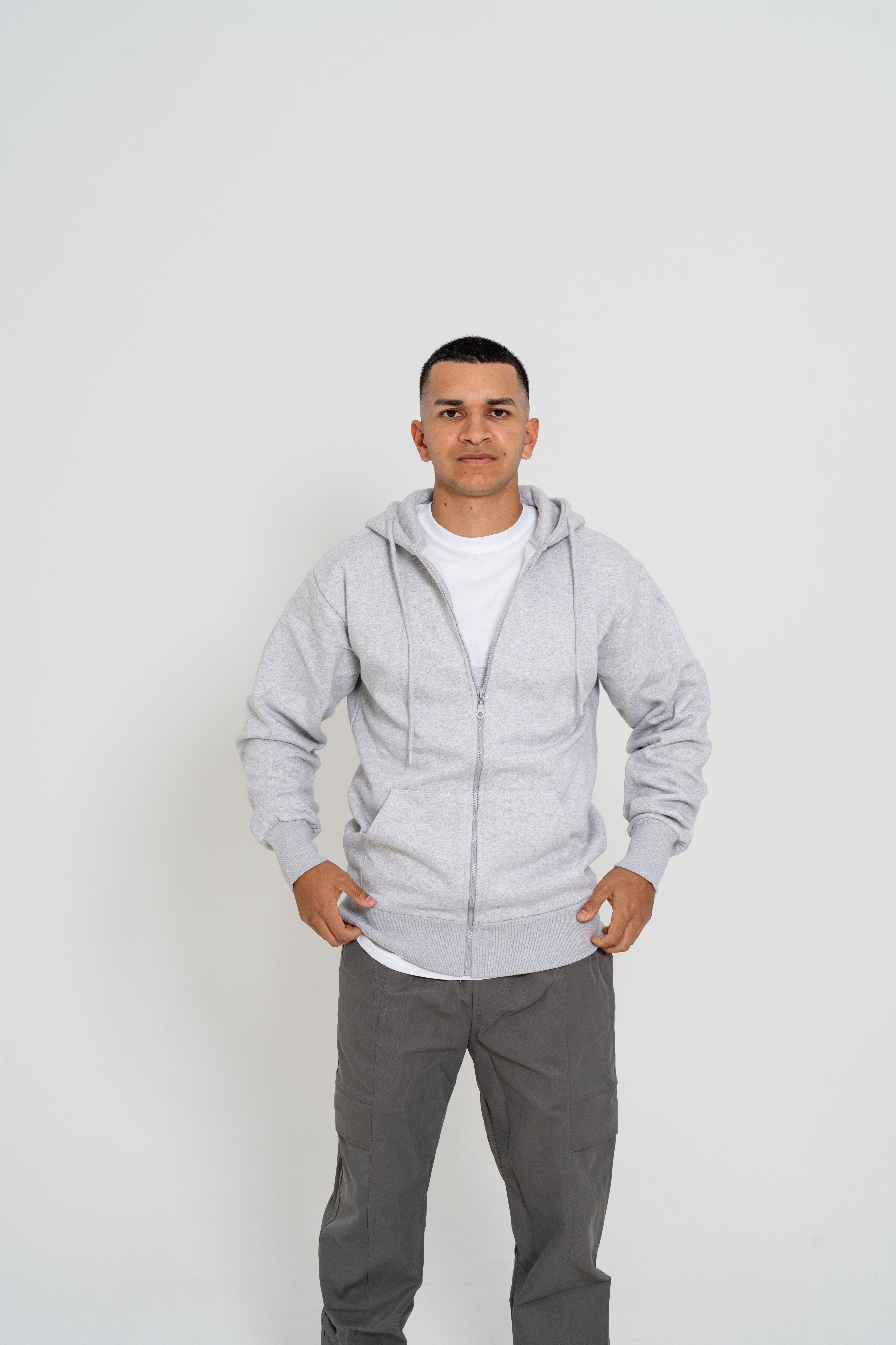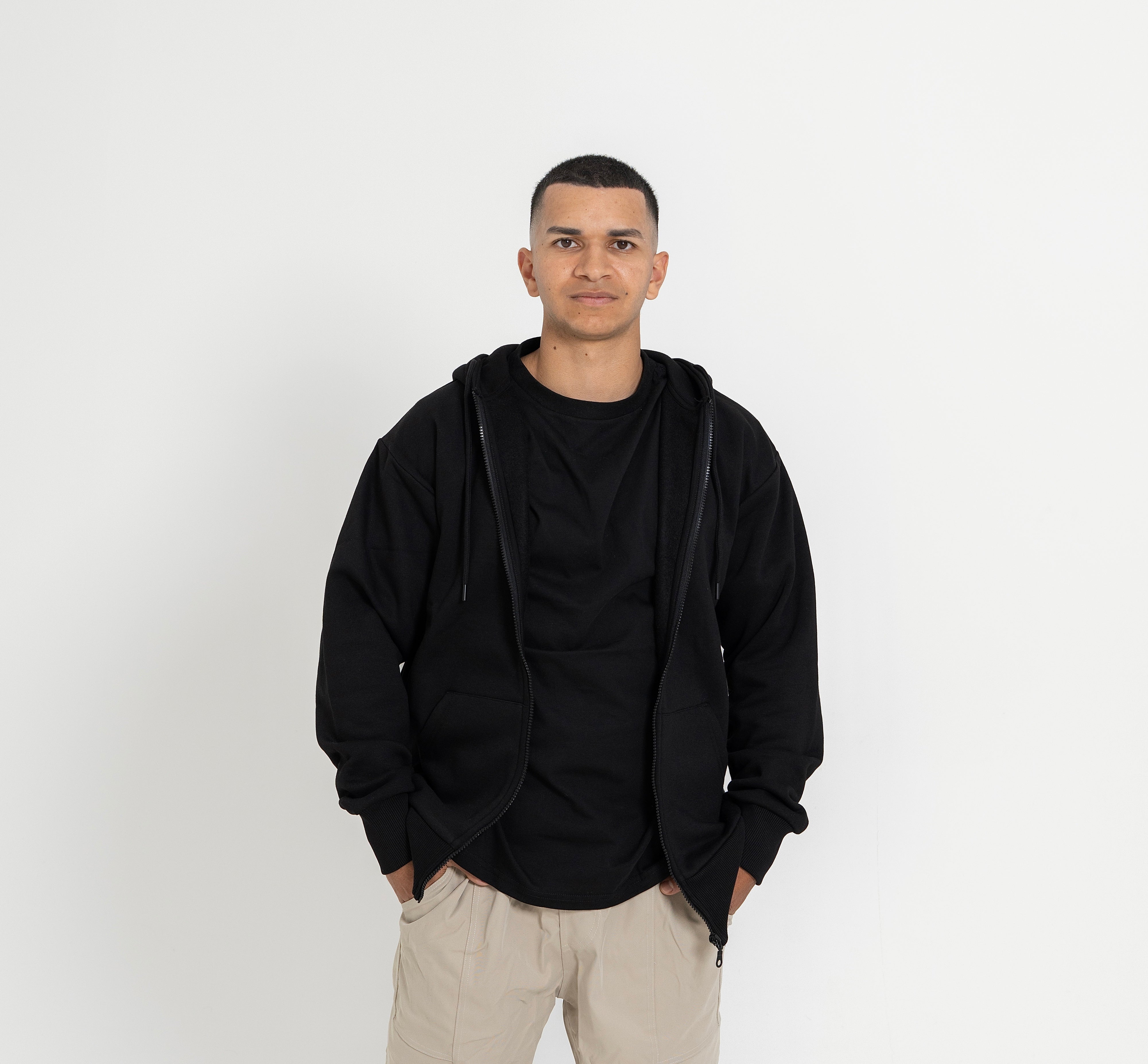 Our Zip Jacket combines relaxed elegance with everyday comfort. Crafted from a premium cotton-polyester blend—65% cotton and 35% polyester—this piece delivers a soft, breathable feel against the skin while maintaining its shape. The loose-fitting silhouette offers effortless style and freedom of movement, making it an ideal layering piece for any season. Modeled here in size M on a 1.72m frame for reference.